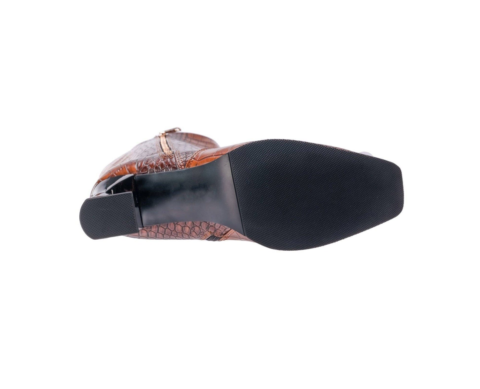 This knee-high boot features a distinctive curvy, indented heel that adds a modern touch to classic styling. Crafted from croc-embossed material in deep, rich tones, it includes full-length zippers on both the inside and outside for easy wear. The enamel-finished heel stands approximately 3 inches tall, complemented by a flexible rubber outsole for comfort. Made entirely from man-made materials, this boot is an expert choice to elevate your fall collection.